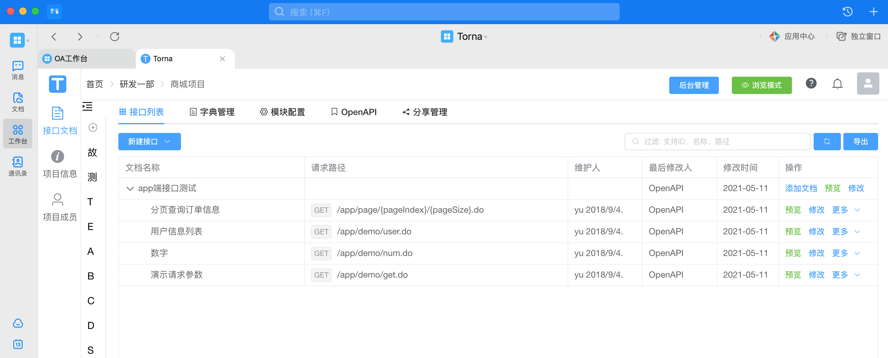 重启服务器,到钉钉OA工作台,点击Torna图标进行登录